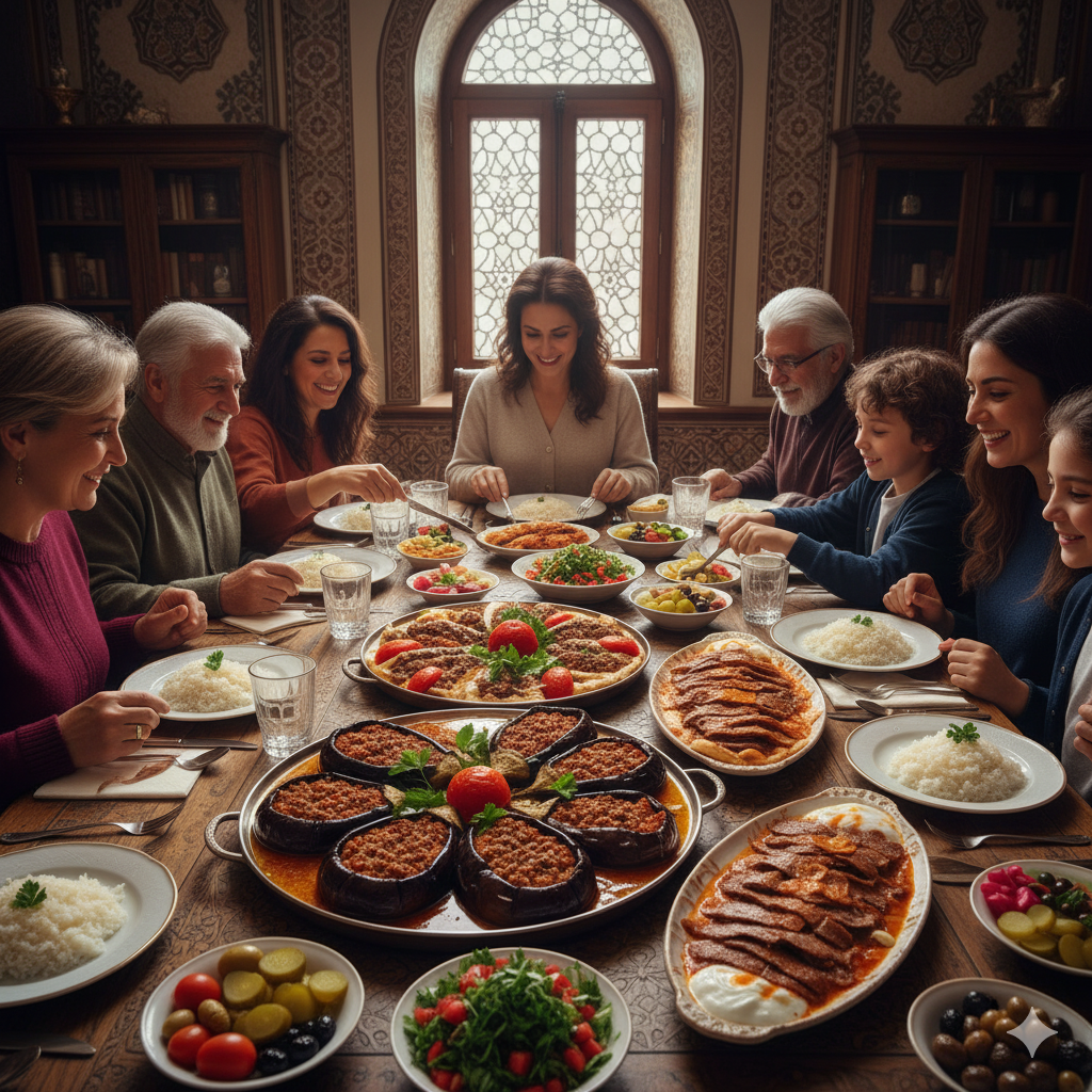 Na Turquia, o almoço de domingo é substancial e muitas vezes é o momento de saborear pratos que levam mais tempo e mão de obra, como guisados, vegetais recheados ou versões mais elaboradas de Kebab.
