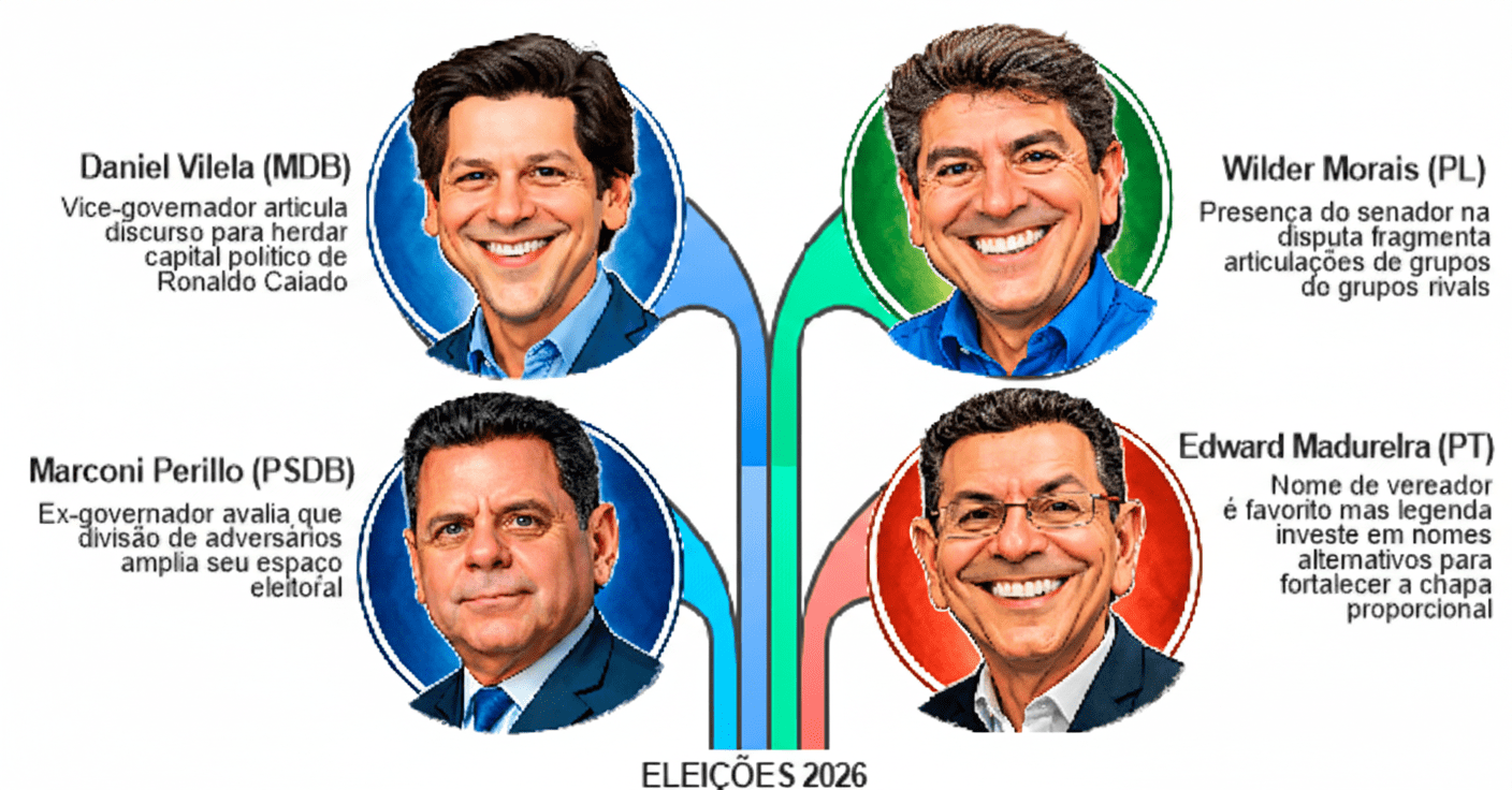 Com três pré-candidaturas consolidadas e uma quarta em gestação, a eleição goiana entra numa fase de disputa de narrativa e ocupação de espaço simbólico.