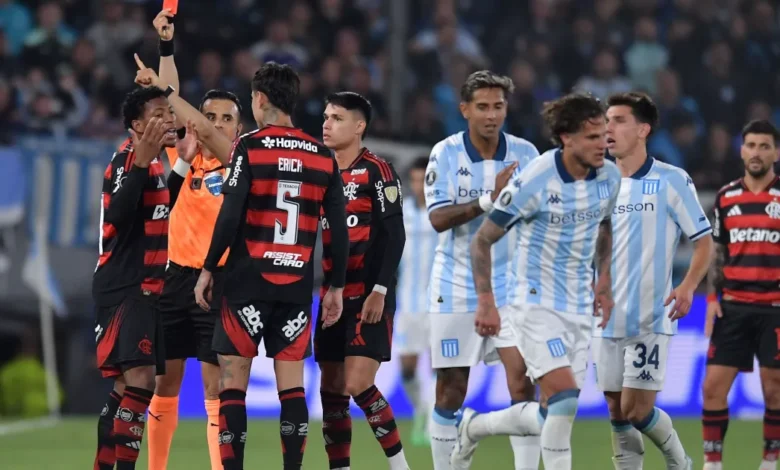Expulsão de Gonzalo Plata: árbitro cita golpe nas genitálias foi o ponto decisivo da semifinal da Copa Libertadores entre Flamengo e Racing, em Buenos Aires. Aos 10 minutos do segundo tempo, o atacante equatoriano recebeu cartão vermelho direto do chileno Piero Maza, que descreveu “golpe deliberado nas genitálias do adversário” na súmula.