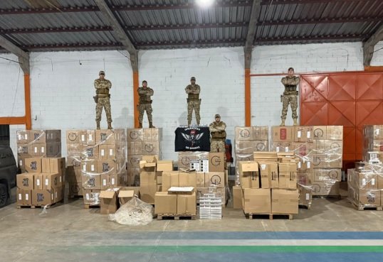 Foram apreendidas 500 caixas de cigarros contrabandeadas, máquinas industriais, insumos e apetrechos, causando um prejuízo de R$ 15 milhões à organização criminosa.