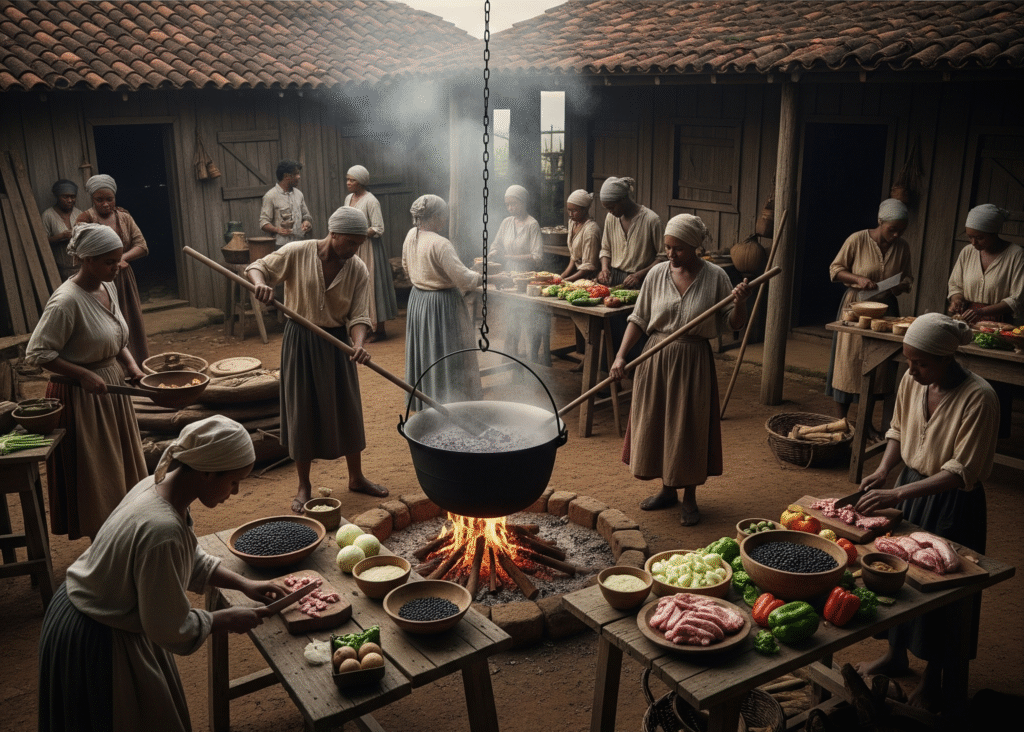 O mito popular conta que ela nasceu nas senzalas, quando os escravizados aproveitavam restos de carne de porco descartados pela casa-grande. Essa versão, embora forte no imaginário popular, não encontra respaldo documental: partes como pés, rabos e orelhas eram consideradas iguarias e não lixo.