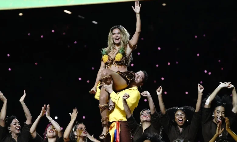 Logo de início, a cantora escolheu “Bandida Entrenada”, funk cantado em português, para dar o tom da apresentação de pouco mais de cinco minutos. Depois, seguiu com “Latina Foreva” — acompanhada por bailarinos que exibiam bandeiras de vários países da América Latina —, “Si Antes Te Hubiera Conocido”, “Un Gatito Me Llamó” e “Papasito”.